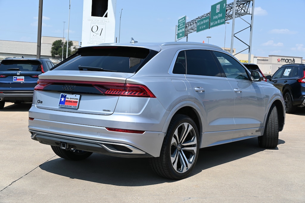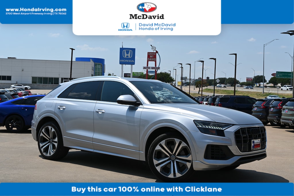 -Low Miles!- PRICED TO SELL QUICKLY! Research suggests it will not be available for long. This 2019 Audi Q8 Prestige looks great with a clean Black interior and Florett Silver Metallic exterior! -Bluetooth- -Heated Front Seats- Keyless Entry -Backup Camera- -Navigation- -Sunroof- -Leather Seats- -Heated Rear Seats- -AM/FM Radio- -Aux Audio Input- -Auto Climate Control- -Multi-Zone Air Conditioning- -Leather Steering Wheel- -Power Liftgate- -Satellite Radio- -Wood Trim- -Towing Package- -High Intensity Headlights- -Parking Sensors- -Alloy Wheels- Our pricing is very competitive and our vehicles sell quickly. Please call us to confirm availability and to setup a time to drive this Q8! Please Contact us at (469) 405-3340. WE ARE LOCATED AT 3700 W Airport Fwy, Irving, TX 75062Used 2019 AudiQ8 3.0T Premium SUV TFSI V6 engine