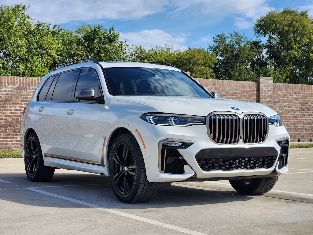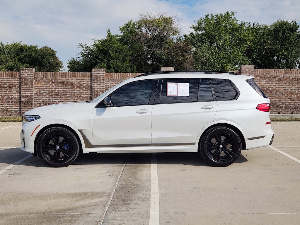 Clean CARFAX. Mineral White Metallic 2022 BMW X7 M50i AWD 8-Speed Automatic Sport 4.4L V8 DOHC 32V CLEAN CARFAX, 16 Speakers, 3.15 Axle Ratio, 3rd row seats: split-bench, 4-Wheel Disc Brakes, 5-Zone Automatic Climate Control, ABS brakes, Air Conditioning, Alloy wheels, AM/FM radio: SiriusXM with 360L, AM/FM Stereo, Apple CarPlay & Android Auto Compatibility, Apple CarPlay Compatibility, Auto High-beam Headlights, Auto tilt-away steering wheel, Auto-dimming door mirrors, Auto-dimming Rear-View mirror, Auto-leveling suspension, Automatic temperature control, BMW Assist eCall, BMW TeleServices, Brake assist, Bumpers: body-color, Cold Weather Package, Compass, Connected Package Pro, ConnectedDrive Services, Delay-off headlights, Door auto-latch, Drive Recorder, Driver door bin, Driver vanity mirror, Dual front impact airbags, Dual front side impact airbags, Electronic Stability Control, Emergency communication system: BMW Assist eCall, Extended Merino Leather Upholstery, Four wheel independent suspension, Front & Rear Heated Seats, Front anti-roll bar, Front Bucket Seats, Front Center Armrest, Front dual zone A/C, Front fog lights, Front Massaging Seats, Front reading lights, Front Ventilated Seats, Fully automatic headlights, Garage door transmitter, Genuine wood console insert, Genuine wood dashboard insert, Genuine wood door panel insert, Gesture Control, harman/kardon Surround Sound System, harman/kardon® Speakers, Head restraints memory, Head-Up Display, Heads-Up Display, Heated door mirrors, Heated front seats, Heated Multi-Contour Seats, Heated steering wheel, Illuminated entry, Increased Top Speed Limiter, Knee airbag, Leather Shift Knob, Live Cockpit Pro w/Navi, Low tire pressure warning, Memory seat, Navigation System, Occupant sensing airbag, Outside temperature display, Overhead airbag, Panic alarm, Passenger door bin, Passenger vanity mirror, Power adjustable front head restraints, Power door mirrors, Power driver seat, Power Front Seats, Power moonroof: Panorama, Power passenger seat, Power steering, Power windows, Radio data system, Rain sensing wipers, Rear air conditioning, Rear anti-roll bar, Rear dual zone A/C, Rear reading lights, Rear seat center armrest, Rear window defroster, Rear window wiper, Reclining 3rd row seat, Remote keyless entry, Roof rack: rails only, Security system, SiriusXM w/360L, Speed control, Speed-sensing steering, Speed-Sensitive Wipers, Split folding rear seat, Spoiler, Sport steering wheel, Steering wheel memory, Steering wheel mounted audio controls, Tachometer, Telescoping steering wheel, Tilt steering wheel, Traction control, Trip computer, Turn signal indicator mirrors, Variably intermittent wipers, Vernasca Leather Upholstery, Wheels: 22 x 9.5 Fr & 22 x 10.5 Rr M V-Spoke, Wheels: 22 x 9.5 Fr & 22 x 10.5 Rr Y-Spoke, WiFi Hotspot, Wireless Charging.Recent Arrival! Odometer is 22501 miles below market average!