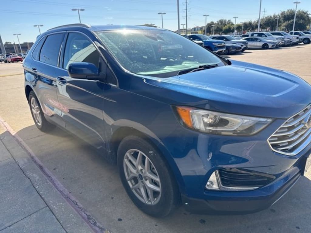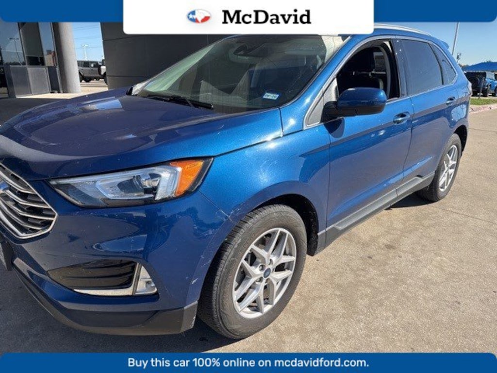 Atlas Blue Metallic 2021 Ford Edge SEL FWD 8-Speed Automatic EcoBoost 2.0L I4 GTDi DOHC Turbocharged VCT BLUETOOTH, REAR BACK UP CAMERA, 6 Speakers, ActiveX Seating Material Heated Bucket Seats, Alloy wheels, Auto-dimming Rear-View mirror, FordPass Connect, Front dual zone A/C, Front fog lights, Fully automatic headlights, Heated door mirrors, Heated front seats, Knee airbag, Outside temperature display, Power door mirrors, Power driver seat, Power Liftgate, Power steering, Power windows, Radio: AM/FM Stereo/MP3 Capable, Remote keyless entry, SiriusXM w/360L, Steering wheel mounted audio controls, SYNC 4A w/Enhanced Voice Recognition, Telescoping steering wheel, Tilt steering wheel.Recent Arrival! 21/29 City/Highway MPG