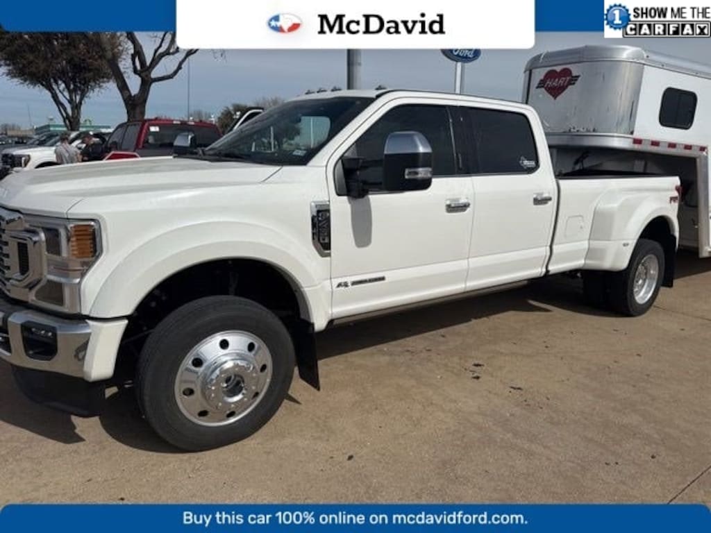 CARFAX One-Owner. Star White Metallic Tri-Coat 2021 Ford F-450SD King Ranch DRW 4WD 10-Speed Automatic Power Stroke 6.7L V8 DI 32V OHV Turbodiesel 4WD, 6 Angular Chrome Step Bars, ABS brakes, Alloy wheels, Body-Color Door Handles w/Chrome Insert, Chrome Exhaust Tip, Chrome Package, Compass, Electronic Stability Control, GVWR: 14,000 lb Payload Package, King Ranch Ultimate Package, Multi-Contour Seats, Order Code 770A, Power-Deployable Running Boards, PowerScope Trailer Tow Mirrors w/Heat, Quad Beam LED Headlamps & LED Taillamps, Tailgate Step & Handle, Traction control, Twin Panel Power Moonroof, Unique Chrome Mirror Caps.Recent Arrival! Odometer is 41537 miles below market average!