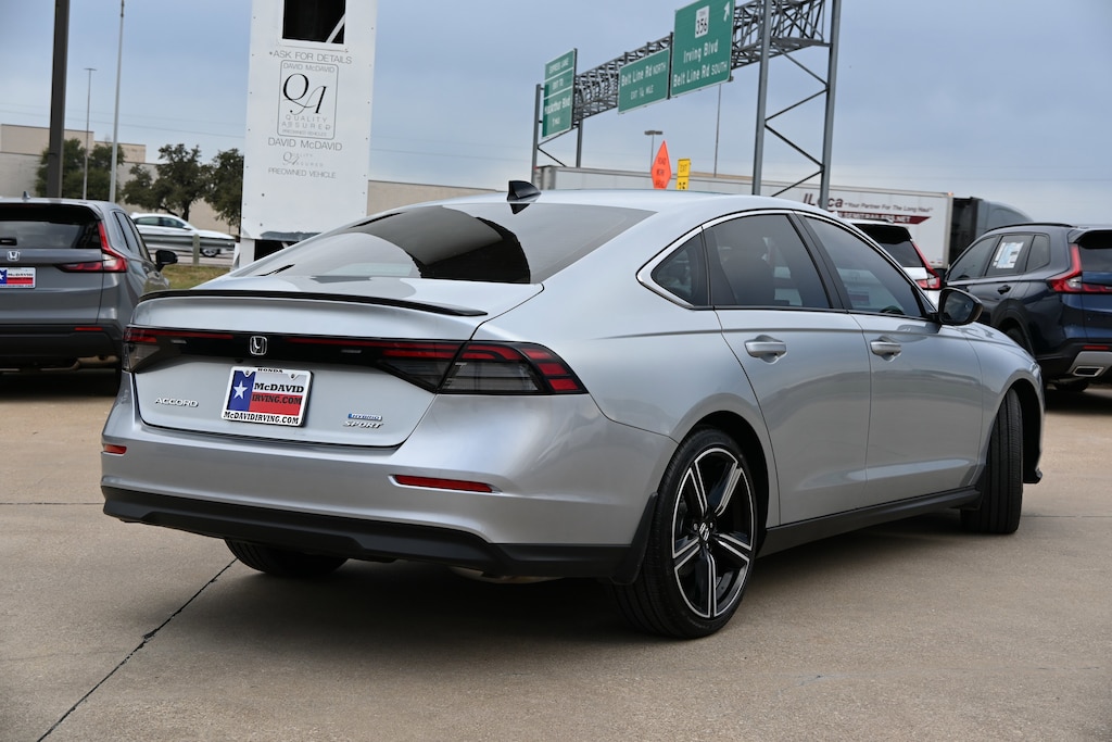 -Low Miles!- -**Certified**- NEW ARRIVAL! PRICED TO SELL QUICKLY! Research suggests it will not be available for long. This 2025 Honda Accord Hybrid Sport looks great with a clean Black interior and Solar Silver Metallic exterior! -Bluetooth- -Heated Front Seats- Keyless Entry -Backup Camera- -Front Wheel Drive- -AM/FM Radio- -Aux Audio Input- -Auto Climate Control- -Multi-Zone Air Conditioning- -Leather Steering Wheel- -High Intensity Headlights- -Alloy Wheels- -GREAT GAS MILEAGE- Our pricing is very competitive and our vehicles sell quickly. Please call us to confirm availability and to setup a time to drive this Accord Hybrid! Please Contact us at (469) 405-3340. WE ARE LOCATED AT 3700 W Airport Fwy, Irving, TX 75062Used 2025 HondaAccord Hybrid Sport Sedan I-4 cyl