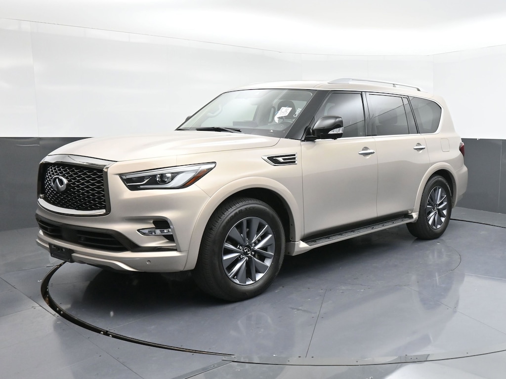 Champagne Quartz 2023 INFINITI QX80 Premium Select RWD 7-Speed Automatic 5.6L V8 All-Season Floor Mats, All-Season Package, Cargo Area Mat, Cargo Net, Cargo Package, Carpeted Cargo Mat, Center Console Tray, Console Net, First-Aid Kit.Odometer is 9805 miles below market average!