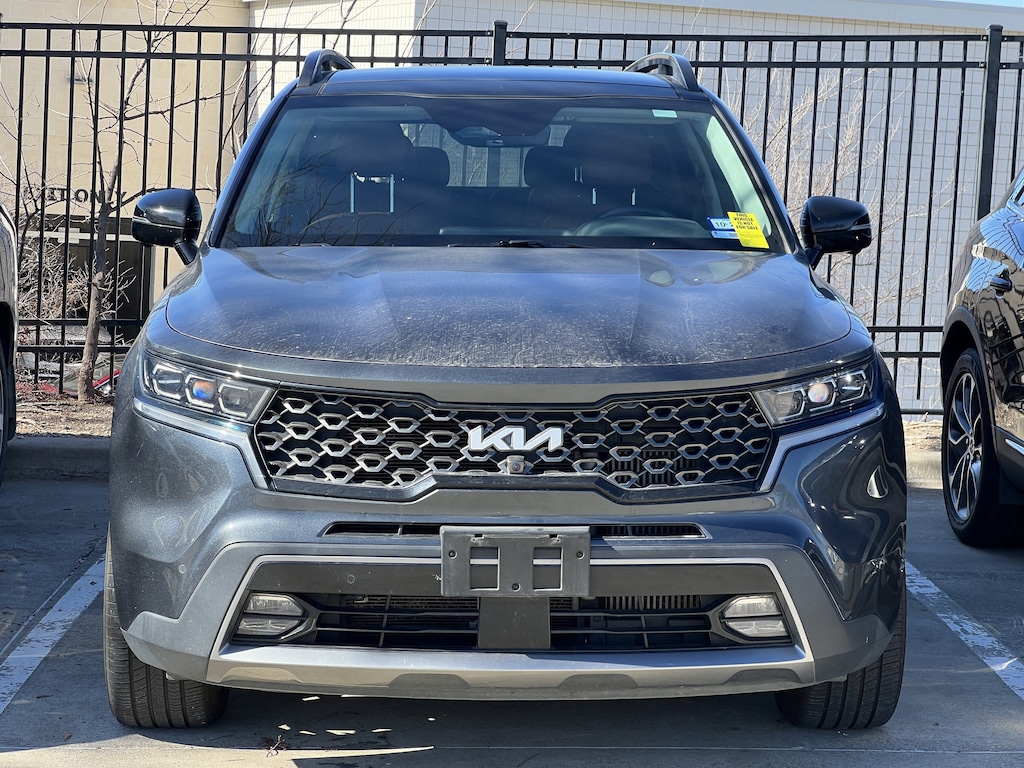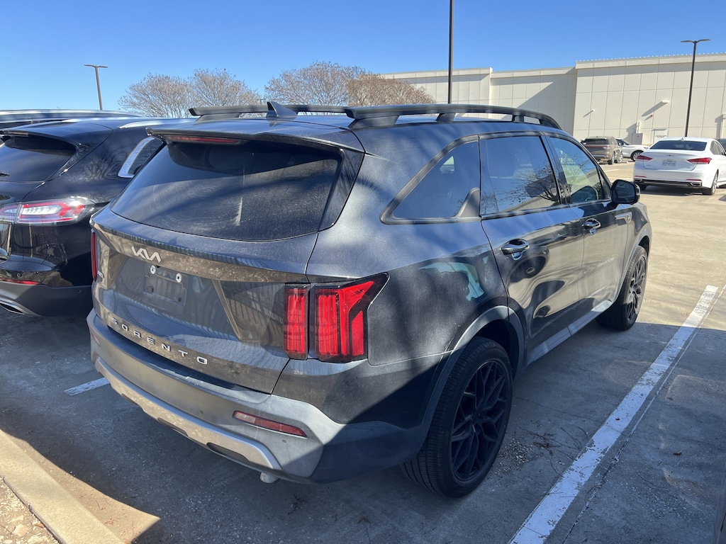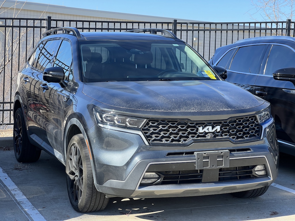 Clean CARFAX. Gravity Gray 2022 Kia Sorento X-Line SX Prestige AWD 8-Speed DCT 2.5L I4 DGI Turbocharged DOHC 16V LEV3-ULEV70 281hp Sorento X-Line SX Prestige, 4D Sport Utility, 2.5L I4 DGI Turbocharged DOHC 16V LEV3-ULEV70 281hp, 8-Speed DCT, AWD, Gravity Gray, Black Leather, 12 Speakers, 3.316 Axle Ratio, 3rd row seats: split-bench, 4-Wheel Disc Brakes, ABS brakes, Air Conditioning, Alloy wheels, AM/FM radio: SiriusXM, Apple CarPlay & Android Auto, Auto High-beam Headlights, Auto-dimming Rear-View mirror, Automatic temperature control, Brake assist, Bumpers: body-color, Delay-off headlights, Driver door bin, Driver vanity mirror, Dual front impact airbags, Dual front side impact airbags, EC Mirror w/HomeLink Plug-N-Play, Electronic Stability Control, Emergency communication system: UVO Link, Four wheel independent suspension, Front anti-roll bar, Front Bucket Seats, Front Center Armrest, Front dual zone A/C, Front fog lights, Front reading lights, Fully automatic headlights, Heated & Ventilated Front Bucket Seats, Heated door mirrors, Heated front seats, Heated rear seats, Heated steering wheel, Illuminated entry, Knee airbag, Leather steering wheel, Low tire pressure warning, Memory seat, Navigation System, Occupant sensing airbag, Outside temperature display, Overhead airbag, Overhead console, Panic alarm, Passenger door bin, Passenger vanity mirror, Perforated Genuine Leather Seat Trim, Power door mirrors, Power driver seat, Power Liftgate, Power moonroof, Power passenger seat, Power steering, Power windows, Radio data system, Radio: AM/FM Bose Premium Audio System, Rear air conditioning, Rear anti-roll bar, Rear reading lights, Rear window defroster, Rear window wiper, Remote keyless entry, Roof rack: rails only, Rust Color Package, Security system, Smart Key w/ Push Button and Remote Start, Speed control, Speed-sensing steering, Split folding rear seat, Spoiler, Steering wheel mounted audio controls, Tachometer, Telescoping steering wheel, Tilt steering wheel, Traction control, Trip computer, Turn signal indicator mirrors, Variably intermittent wipers, Ventilated front seats, Wheels: 8.5J x 20 Matte Gray Alloy.Recent Arrival! 22/27 City/Highway MPG
