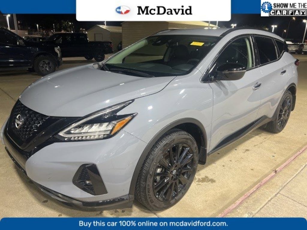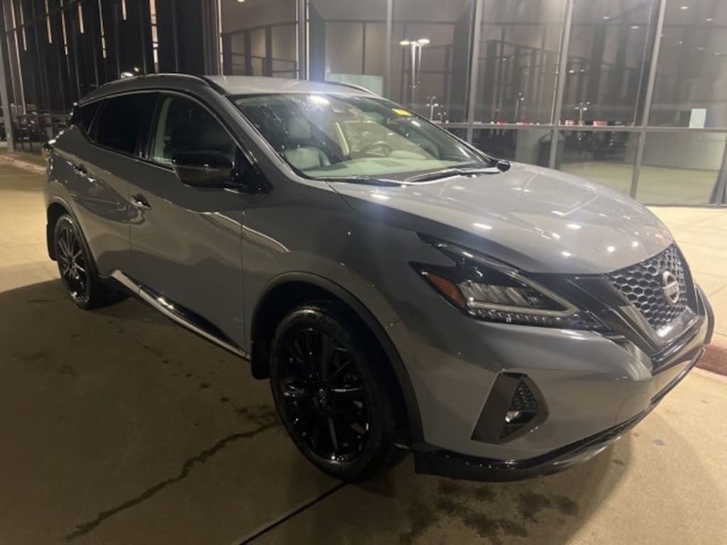 CARFAX One-Owner. Clean CARFAX. Boulder Gray Pearl 2024 Nissan Murano SV FWD CVT with Xtronic 3.5L V6 DOHC 24V BLUETOOTH, REAR BACK UP CAMERA, APPLE CAR PLAY, CVT with Xtronic, 6 Speakers, Alloy wheels, AM/FM/CD/MP3/WMA Audio System, Auto-dimming Rear-View mirror, Black Splash Guards, Blind Spot Warning, CD player, Compass, Front dual zone A/C, Front fog lights, Fully automatic headlights, Heated front seats, Illuminated Kickplates, Knee airbag, Leather steering wheel, Leatherette-Appointed Seat Trim, Low tire pressure warning, Midnight Edition Badge, NissanConnect featuring Apple CarPlay and Android Auto, Outside temperature display, Power door mirrors, Power driver seat, Power steering, Power windows, Remote keyless entry, Speed-sensing steering, Steering wheel mounted audio controls, SV Midnight Edition Package, Telescoping steering wheel, Tilt steering wheel, Wheels: 20 Gloss Black Aluminum Alloy.Recent Arrival! Odometer is 2799 miles below market average! 20/28 City/Highway MPG