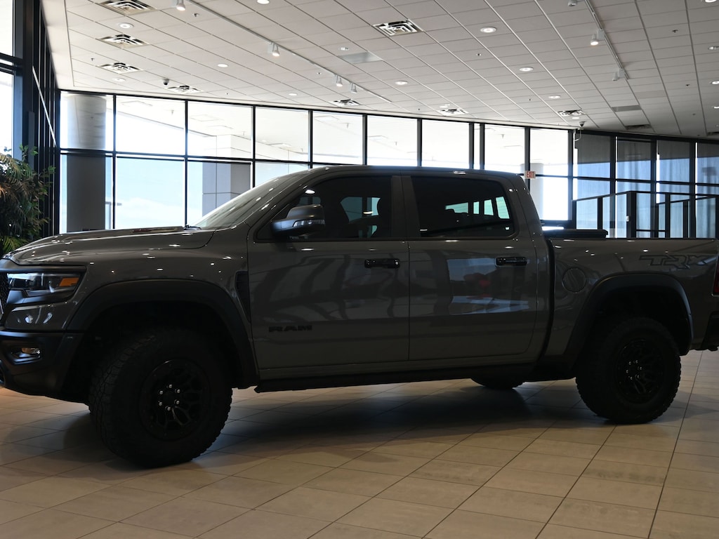 Clean CARFAX. Ceramic Gray Clearcoat 2023 Ram 1500 TRX 4WD 8-Speed Automatic 6.2L Supercharged HEMI V8 SRT Lunar Edition, #2 Seat Foam Cushion, 2-Door Passive Entry, Front Door Locks, 4 Way Front Headrests, Accent Color Door Handles, Blind Spot & Cross Path Detection, Bucket Seats, Center Console Parts Module, Digital Rearview Mirror, Driver Seat Memory, Driver/Passenger Wrapped Assist Handles, Exterior Mirrors w/Memory, Front Door Accent Lighting, Front Seat Back Map Pockets, Full Length Premium Upgraded Floor Console, harman/kardon 19 Speaker Premium Sound, Heads-Up Display, Heated Front Seats, Heated Second Row Seats, Heated Steering Wheel, IP LED Ambient Light Pipe, Leather Trimmed Bucket Seats, Leather/Suede Flat-Bottom Steering Wheel, LED CHMSL Lamp, Luxury Front Door Trim Panel, MOPAR Bright Pedal Kit, ParkSense Front/Rear Park Assist w/Stop, Pick-Up Box Lighting, Power 4-Way Driver Lumbar Adjust, Power 4-Way Passenger Lumbar Adjust, Power 8-Way Driver & Passenger Seats, Power Adjustable Pedals w/Memory, Premium Wrapped IP Bezel, Quick Order Package 29Y, Radio/Driver Seat/Mirrors/Pedals Memory, Rain Sensitive Windshield Wipers, Rear 60/40 Folding Seat, Rear 60/40 Folding Split Recline Seat, Rear Door Accent Lighting, Rear Underseat Compartment Storage, Rear Window Defroster, Remote Tailgate Release, Sun Visors w/Illuminated Vanity Mirrors, Surround View Camera System, Trailer Brake Control, TRX Level 2 Equipment Group, Universal Garage Door Opener, Ventilated Front Seats, Ventilated Rear Seats, Wireless Charging Pad.Odometer is 4501 miles below market average!