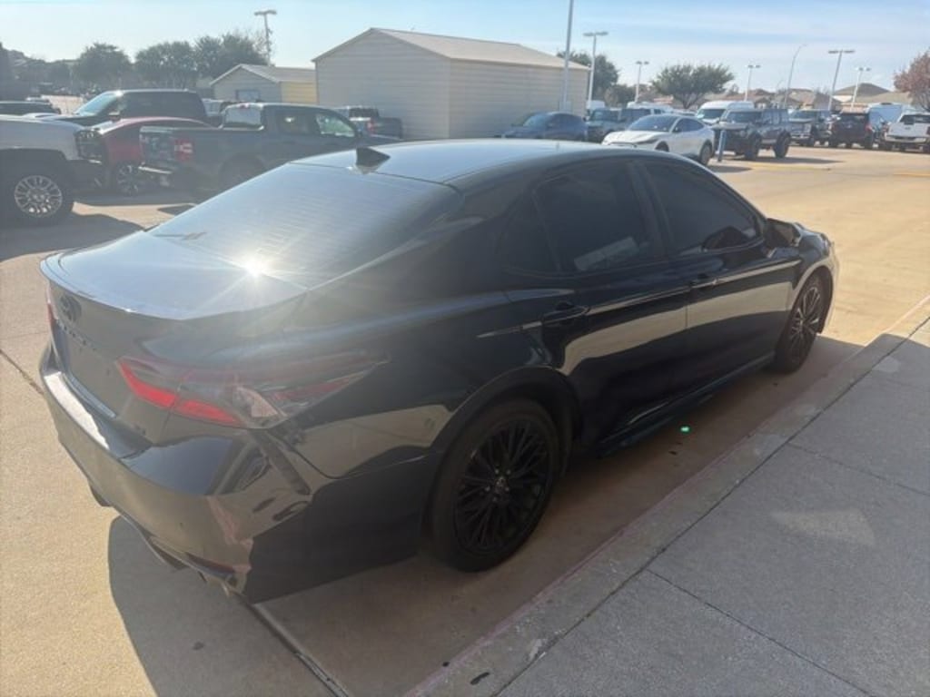 Clean CARFAX. Midnight Black Metallic 2022 Toyota Camry SE Nightshade FWD 8-Speed Automatic 2.5L I4 DOHC 16V BLUETOOTH, REAR BACK UP CAMERA, APPLE CAR PLAY, Black w/Fabric Seat Trim, 6 Speakers, ABS brakes, Active Cruise Control, Alloy wheels, Apple CarPlay/Android Auto, Black Door Handles, Black Mirror Caps, Black Rear Badges, Black Rear Spoiler, Black Shark-Fin Antenna, Black Window Molding, Electronic Stability Control, Emergency communication system: Safety Connect with 1-year trial, Fabric Seat Trim w/Sport SofTex, Front dual zone A/C, Fully automatic headlights, Heated door mirrors, Illuminated entry, Knee airbag, Low tire pressure warning, Nightshade Edition, Power door mirrors, Power driver seat, Power steering, Power windows, Radio: AM/FM Audio System, Remote keyless entry, Steering wheel mounted audio controls, Telescoping steering wheel, Tilt steering wheel, Traction control.Recent Arrival! Odometer is 19894 miles below market average! 28/39 City/Highway MPG